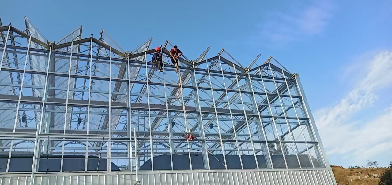 Glass Open Roof Greenhouse in Wuhan, China