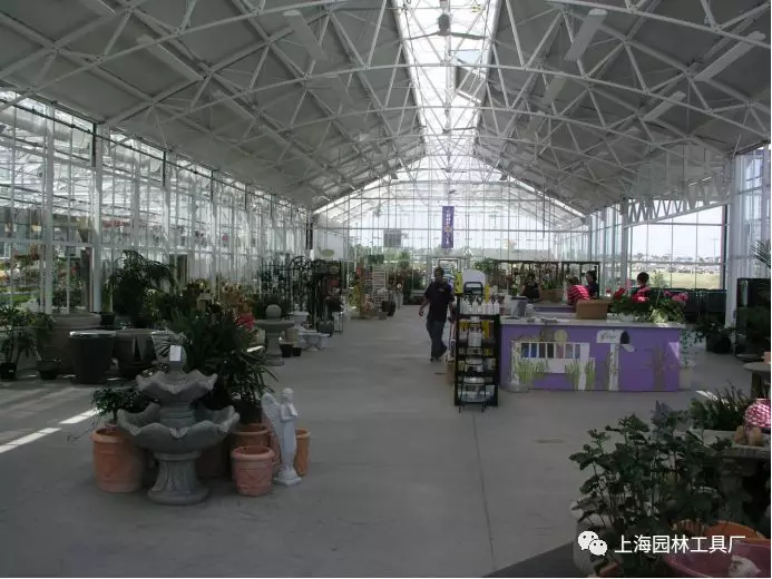 除了美观的外形,上海园林工具厂设计并建造的园艺中心温室还具体以下特点: